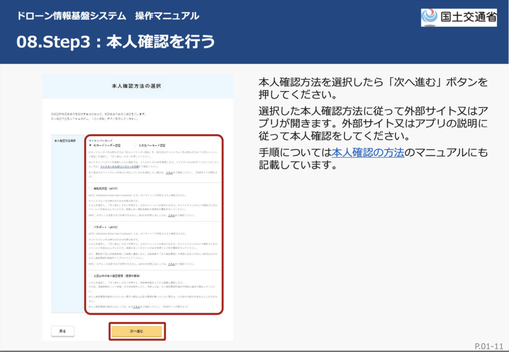 本人確認方法を選択したら「次へ進む」を押し、表示された手順に従って本人確認を完了させてください。