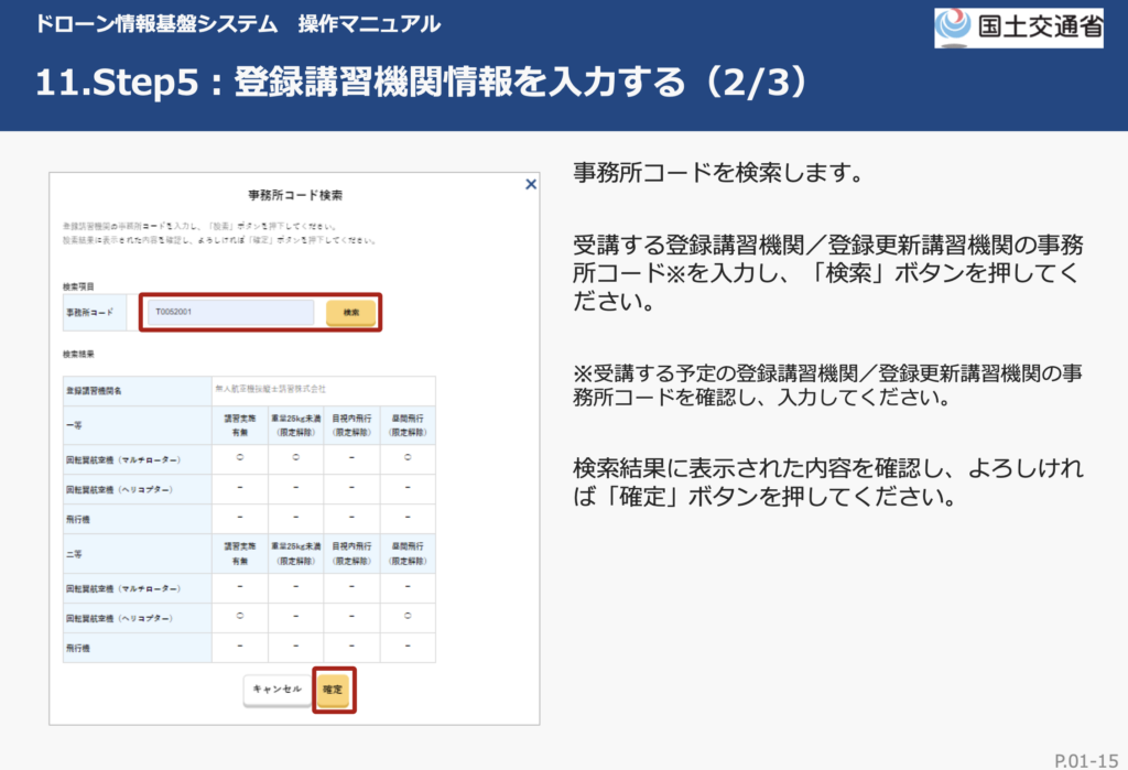 Step5:登録講習機関の入力/JMAドローンスクールの事務所コード